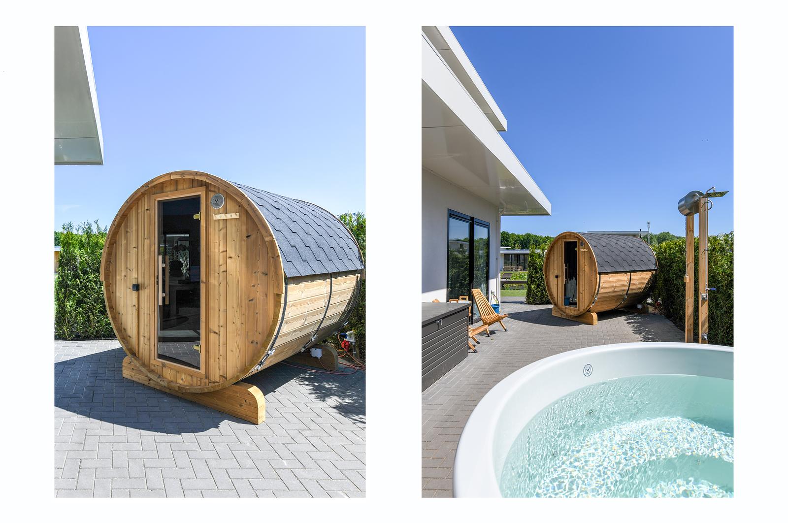 Sobald du die Schiebetüren öffnest, trittst du in einen Garten, in dem wirklich an alles gedacht wurde: ein Whirlpool zum Entspannen, eine finnische Sauna für das Extra-Wellnessgefühl, Liegestühle zum Sonnen, ein Grill für lange Sommerabende und eine gemütliche Lounge-Sitzgruppe zum Wohlfühlen.