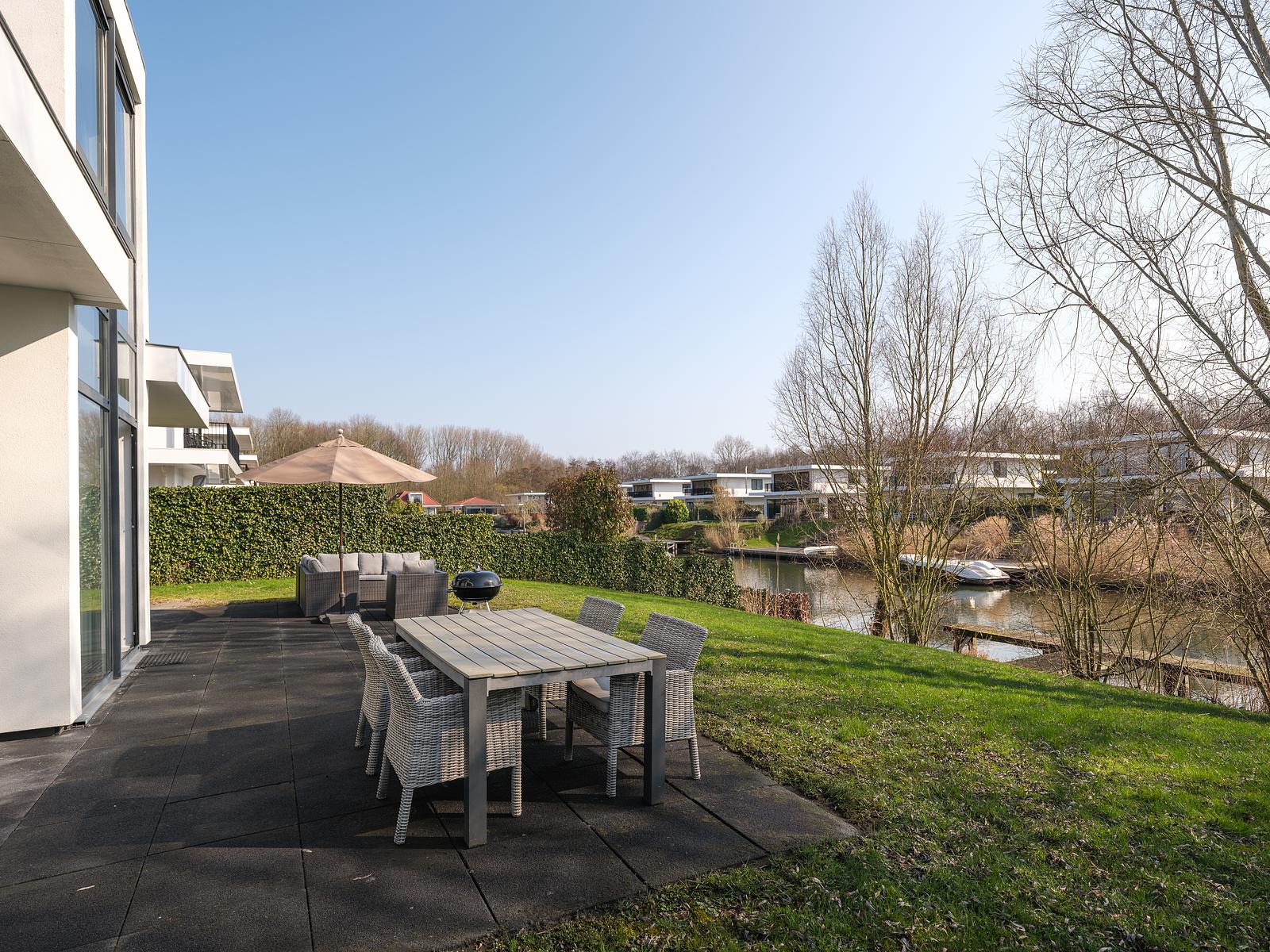 Luxuriöse 4-Personen-Villa am Wasser mit moderner Küche, privatem Zweibettzimmer und einer geräumigen Terrasse mit Grill und Loungeset. Perfekt zum Rosten und Spannen!