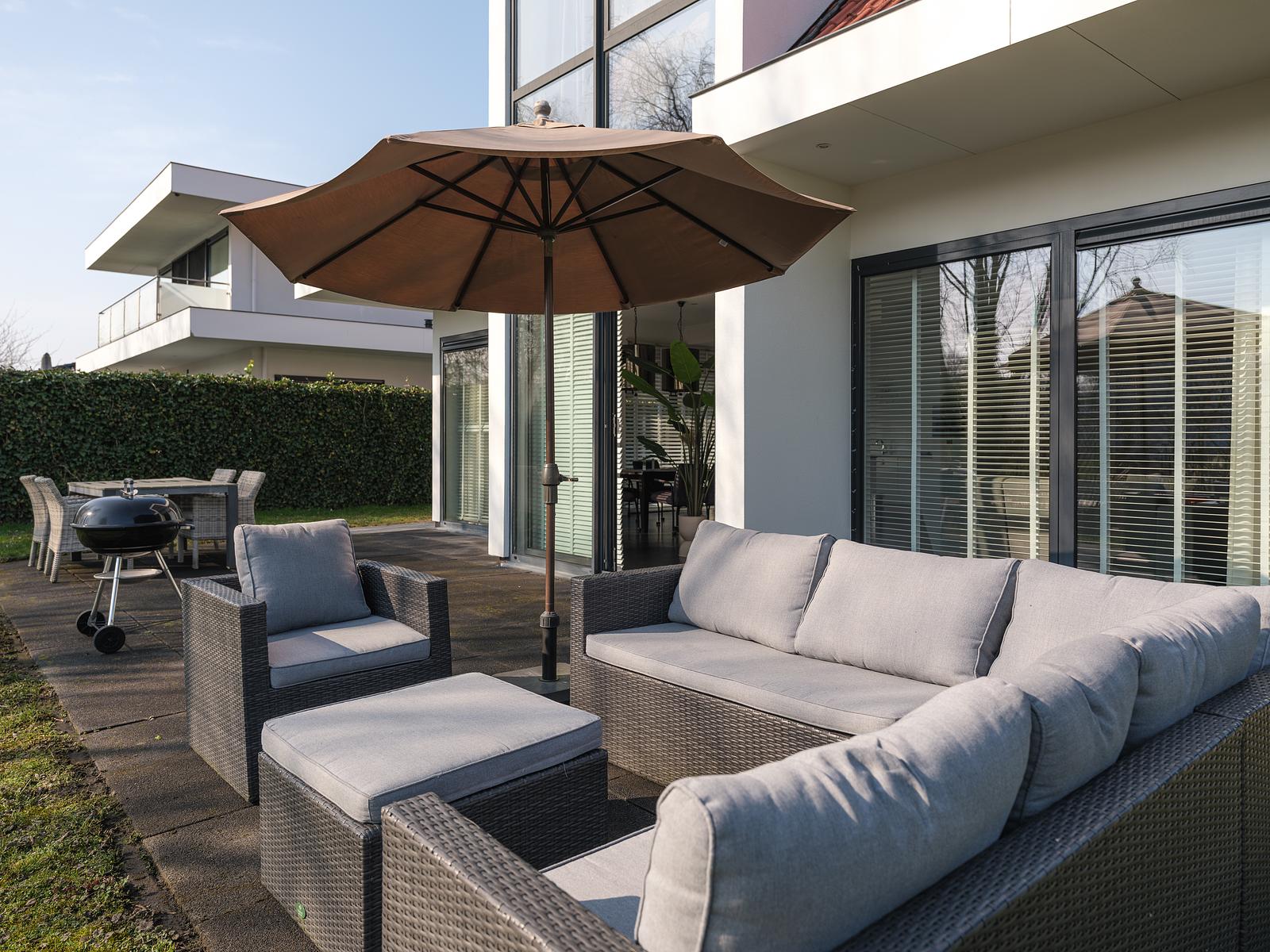 - geräumige Terrasse mit Grill und Lounge-Set.