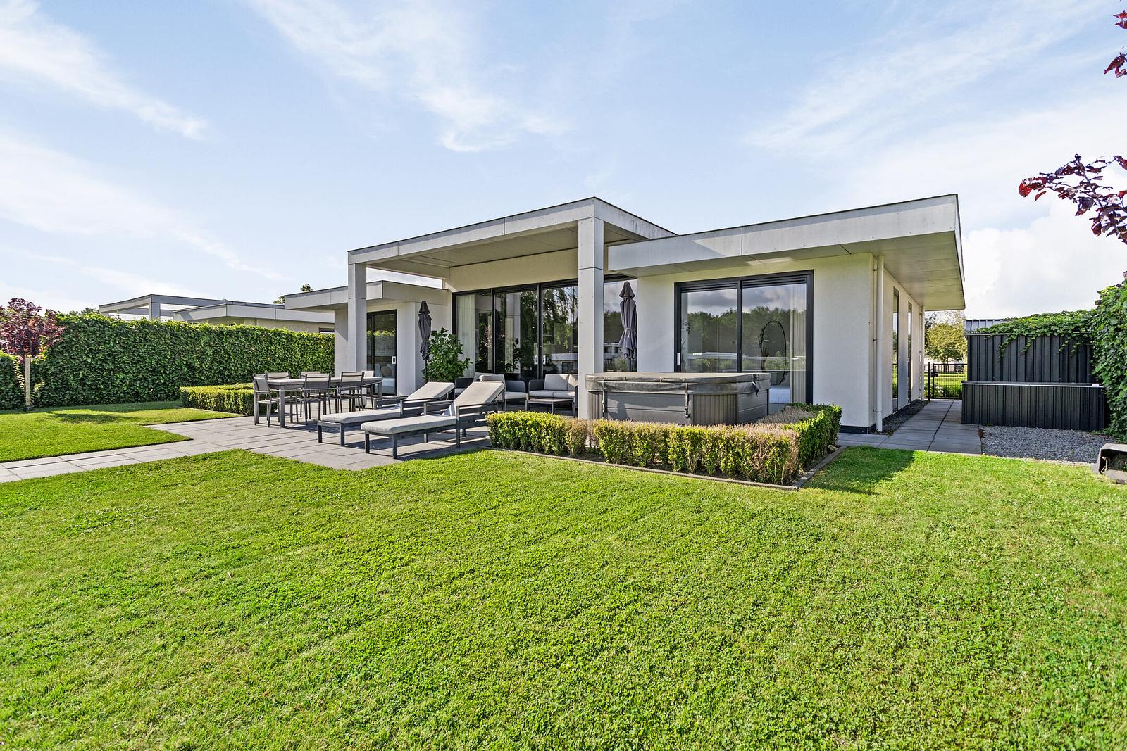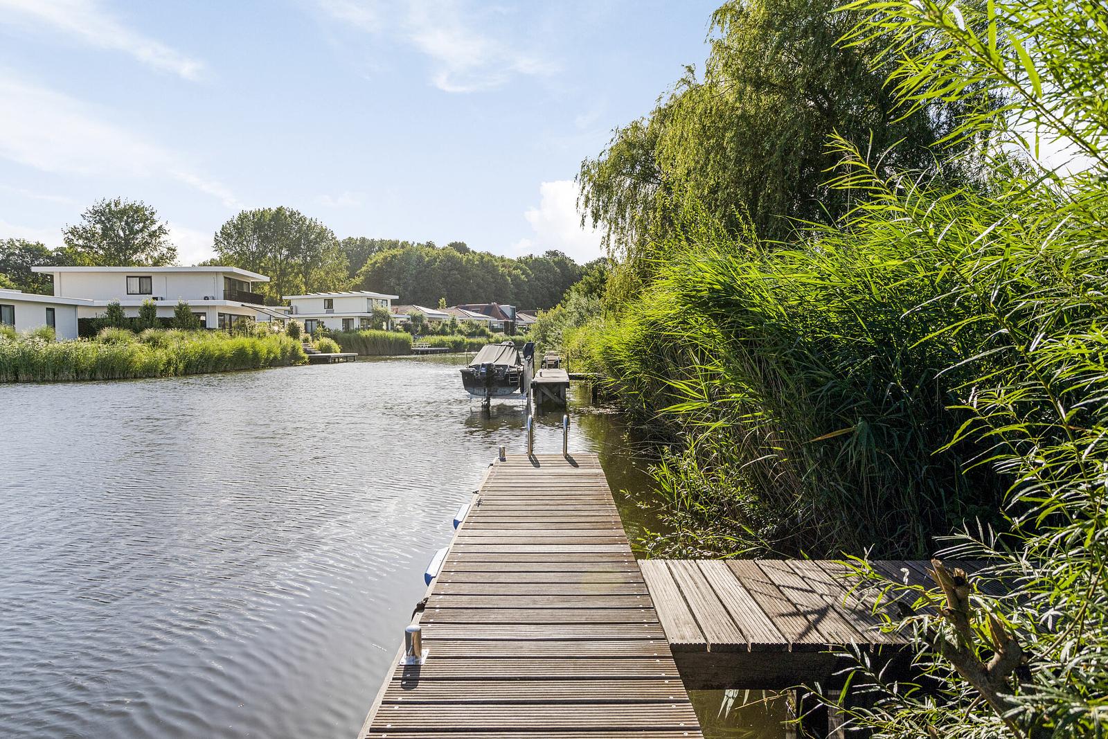 De fraai aangelegde tuin nodigt uit om optimaal te genieten van het buitenleven. Ontspan in de jacuzzi, plof neer in de loungeset of dineer samen aan de ruime eettafel tijdens lange, zwoele avonden. Vanaf de privésteiger stap je zo het water in voor een verfrissende duik, of maak je gebruik van de aanwezige watersportuitrusting om het water op te gaan.