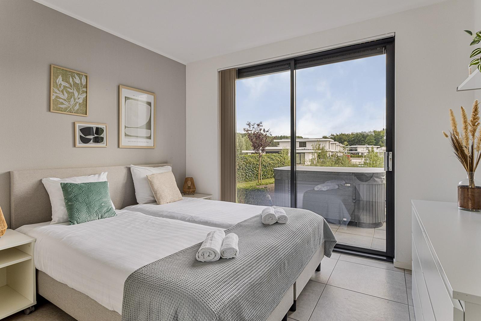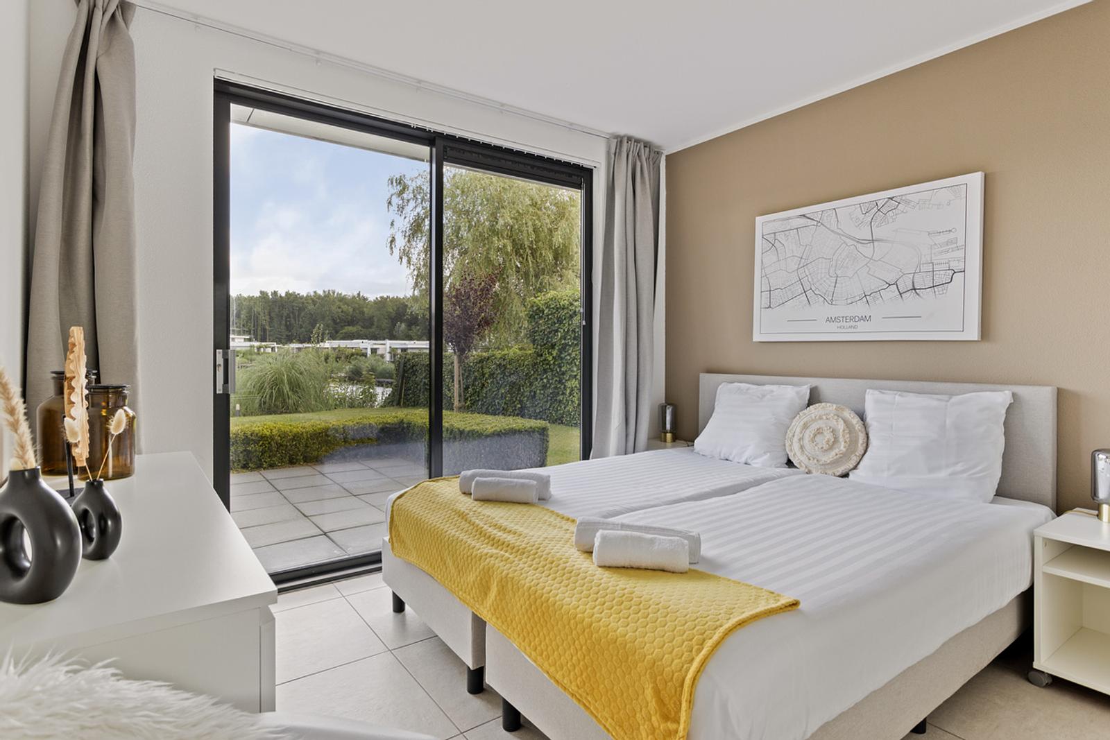 De villa beschikt over drie ruime slaapkamers met comfortabele tweepersoonsbedden. Dankzij de twee moderne badkamers en een extra apart toilet is er alle ruimte en gemak voor het hele gezelschap. De lichte woonkamer met grote raampartijen biedt een prachtig uitzicht over de tuin en het water – een heerlijke plek om samen te ontspannen.
